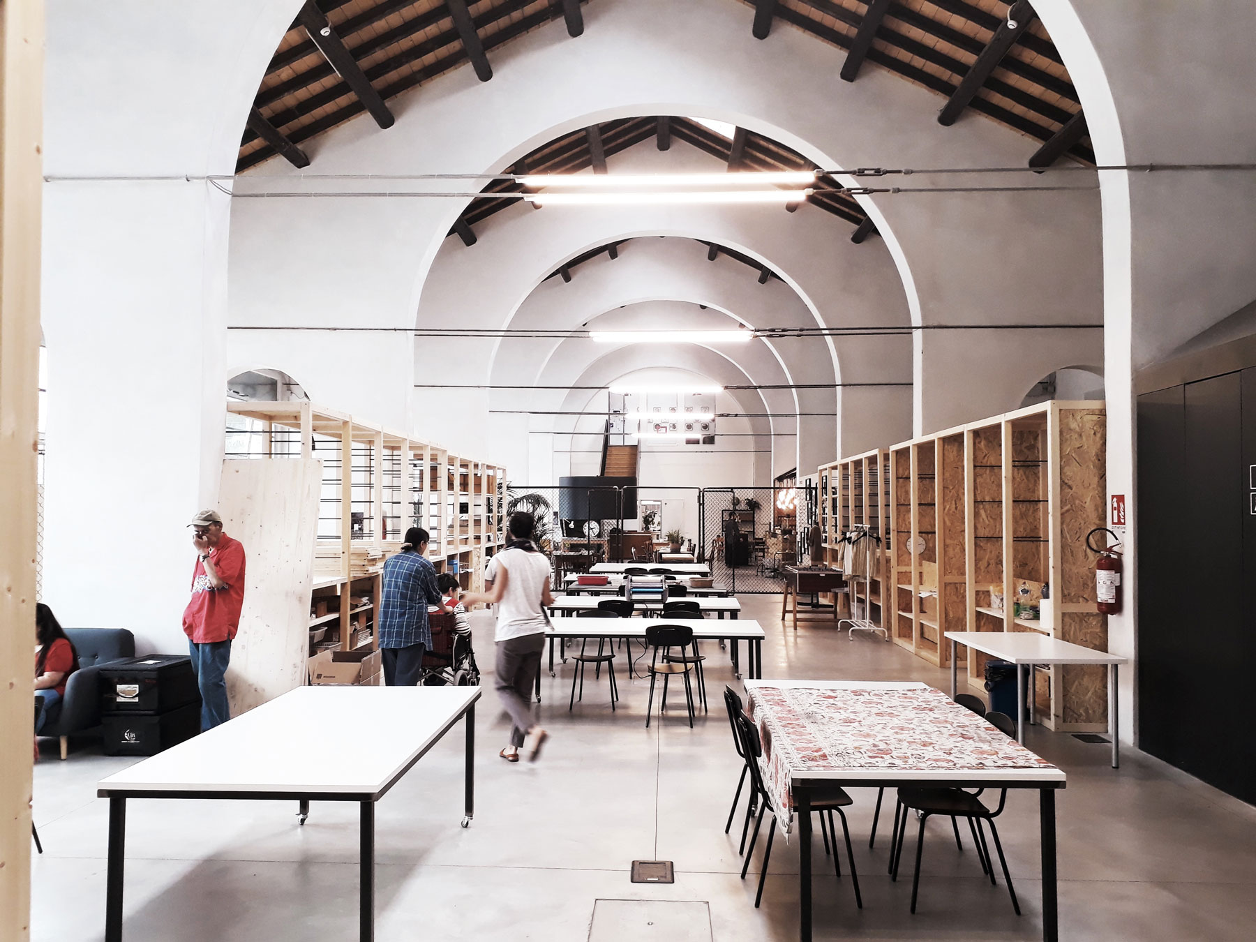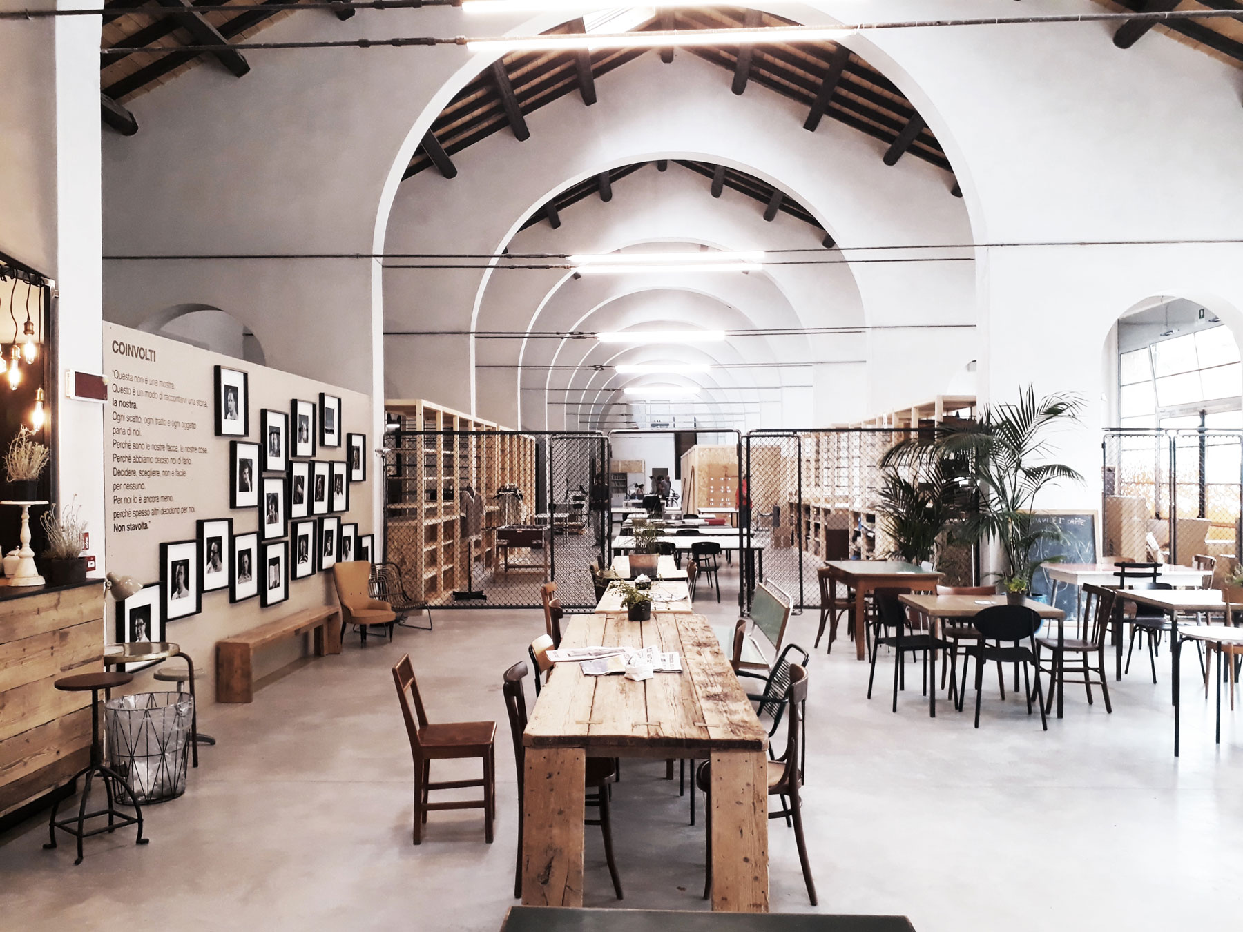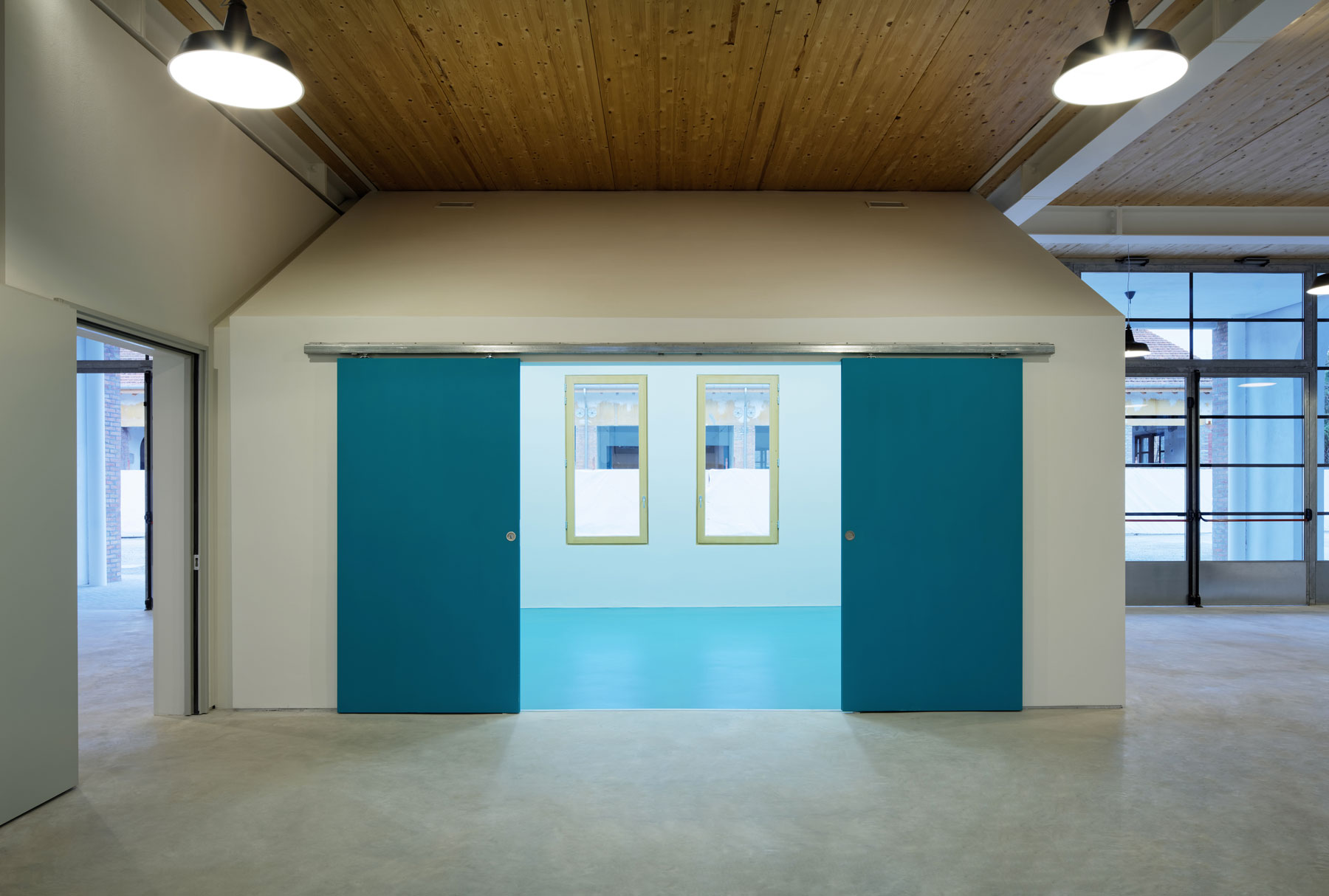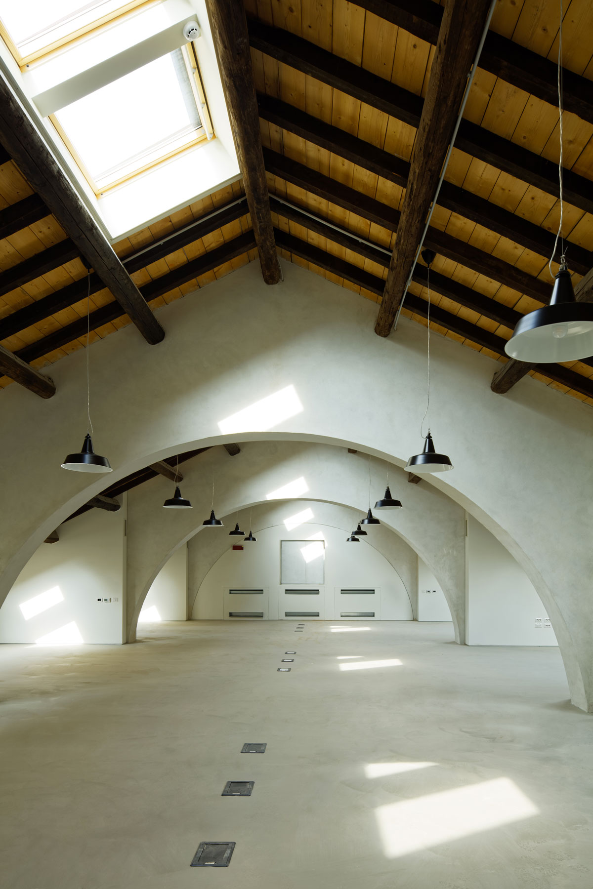 Ai due capannoni sostanzialmente simmetrici hanno corrisposto scelte progettuali estremamente diverse: si è voluto infatti mantenere in uno dei due edifici la memoria della tipologia e la possibilità di apprezzare il suggestivo spazio originario, mentre si è scelto di utilizzare in modo più denso l’altro edificio soppalcandolo quasi interamente e collocandovi le funzioni che richiedono una maggiore articolazione dello spazio (per ragioni funzionali e di privacy).