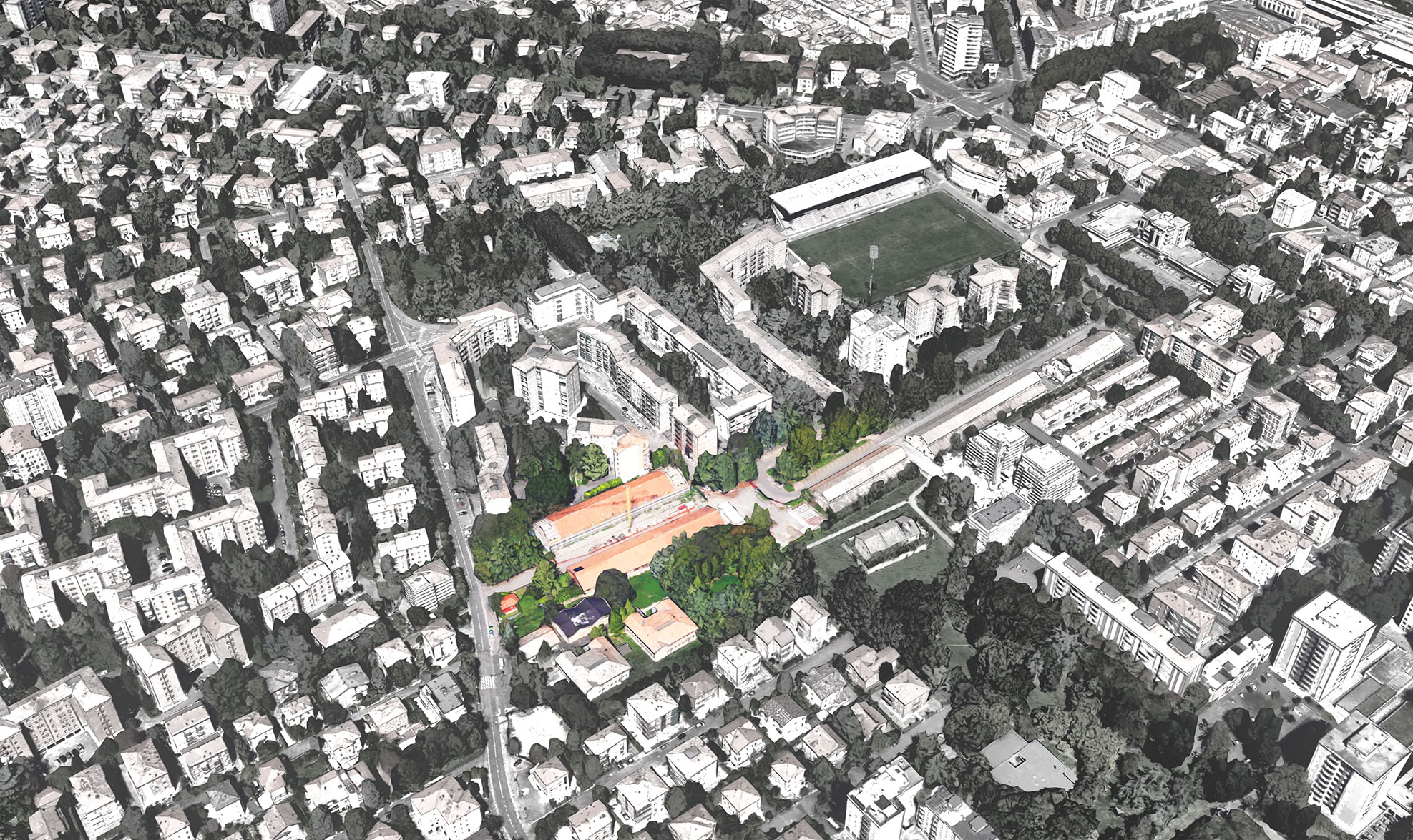 Il progetto Polveriera nasce in questo contesto: un complesso di beni pubblici dismessi a ridosso del centro storico che per anni ha rappresentato un grosso vuoto urbano e che il Comune ha deciso di recuperare, con l’obiettivo di contribuire al processo di rigenerazione dell’intero quartiere Mirabello tramite l’insediamento di nuovi servizi e nuove polarità nel campo sociale, culturale e commerciale.